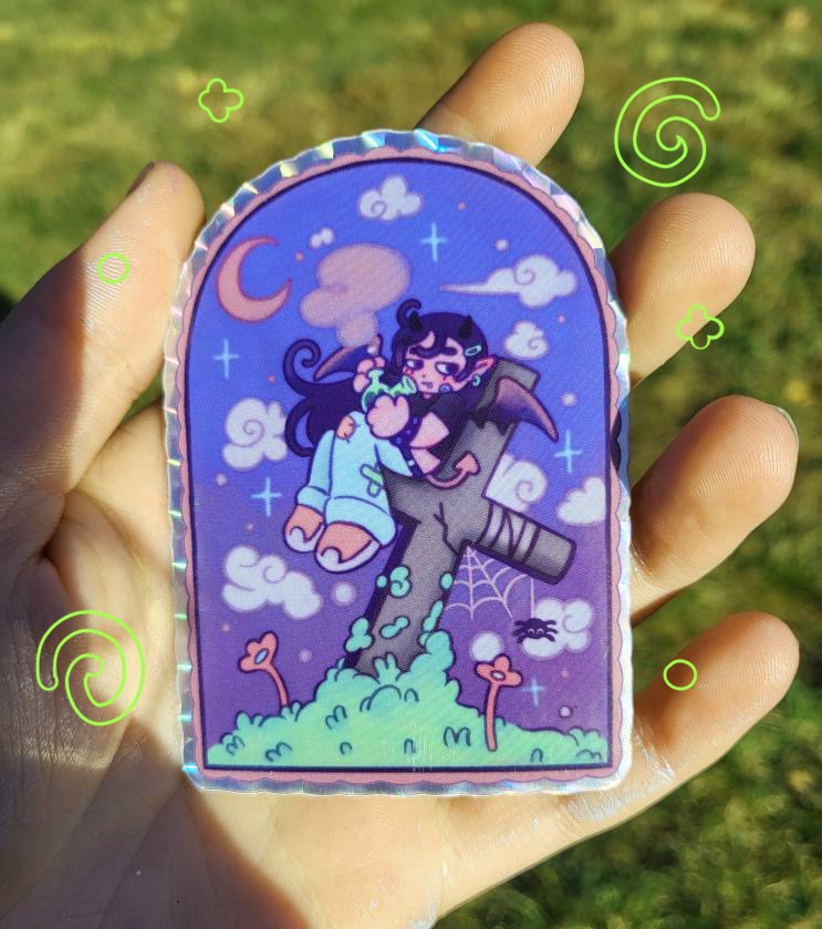 vamp gorl smoking on cross sticker